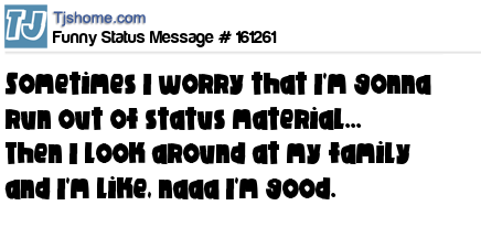 X says Sometimes I worry that I'm gonna run out of status material... Then I look around at my family and I'm like, naaa I'm good.