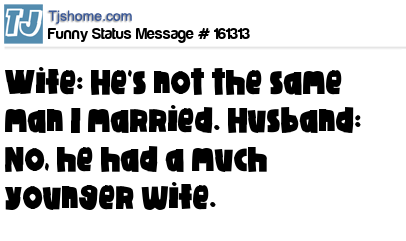 X says Wife: He's not the same man I married. Husband: No, he had a much younger wife.
