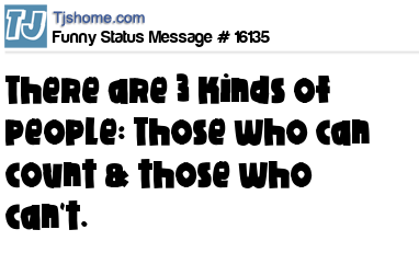 - # 27273 there are three kinds of people in this world. those who can count...and those who can't!