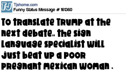 X says To translate Trump at the next debate,, the sign language specialist will just beat up a poor pregnant mexican woman .