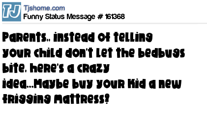 X says Parents,, instead of telling your child don't let the bedbugs bite, here's a crazy idea...Maybe buy your kid a new frigging mattress?