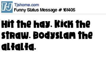 X says Hit the hay. Kick the straw. Bodyslam the alfalfa.