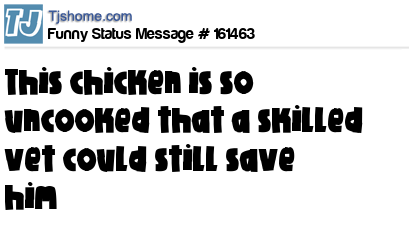 - # 149245 Me: This chicken is undercooked. Wife: You don't appreciate my cooking. Me: I think the vet could save it if it we took it right now.