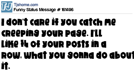 X I don't care if you catch me creeping your page. I'll like 74 of your posts in a row, what you gonna do about it.