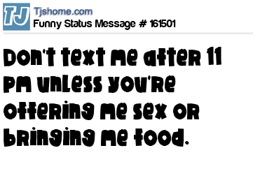 X Don't text me after 11 pm unless you're offering me sex or bringing me food.