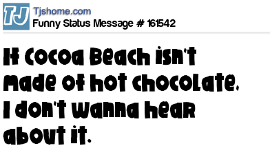 X says If Cocoa Beach isn't made of hot chocolate, I don't wanna hear about it.