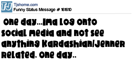 X says One day...Ima log onto social media and not see anything Kardashian/Jenner related. One day..