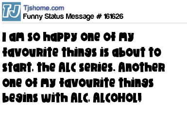 X says I am so happy one of my favourite things is about to start, the ALC series. Another one of my favourite things begins with ALC, ALCOHOL!