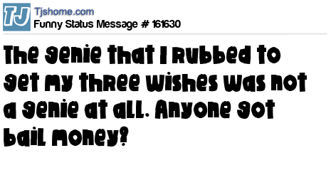 X says The genie that I rubbed to get my three wishes was not a genie at all. Anyone got bail money?