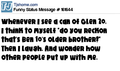 X says whenever I see a can of Glen 20, I think to myself "do you reckon that's Ben 10's older brother?" Then I laugh. And wonder how other people put up with me.