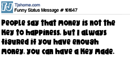 - # 166302 People say money is not the key to happiness, but I always figured if you had enough money, you can have a key made.
