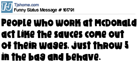 X People who work at McDonalds act like the sauces come out of their wages, just throw 5 in the bag and behave.