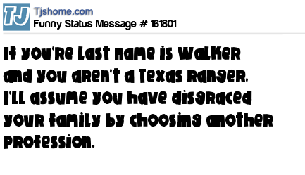 X says If you're last name is Walker and you aren't a Texas ranger, I'll assume you have disgraced your family by choosing another profession.