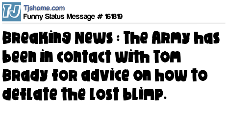 X says Breaking News : The Army has been in contact with Tom Brady for advice on how to deflate the lost blimp.