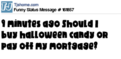 X says 9 minutes ago Should I buy halloween candy or pay off my mortgage?