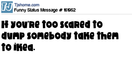 - # 131064 Those fake living rooms at IKEA should have a couple in them trying to assemble IKEA furniture and fighting.