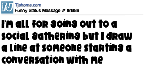 X I'm all for going out to a social gathering but I draw a line at someone starting a conversation with me
