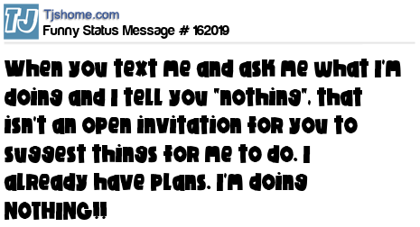 X When you text me and ask me what I'm doing and I tell you "nothing", that isn't an open invitation for you to suggest things for me to do. I already have plans. I'm doing NOTHING!!