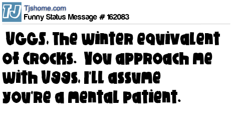 X says UGGS, The winter equivalent of Crocks. You approach me with Uggs, I'll assume you're a mental patient.