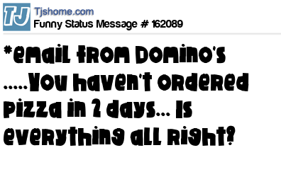X says *email from Domino's .....You haven't ordered pizza in 2 days... Is everything all right?