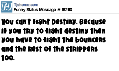 - # 162378 You can't fight Destiny. Because if you try to fight Destiny, then you have to fight the bouncers and the rest of the strippers too