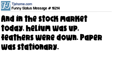 X says And in the stock market today, helium was up, feathers were down. Paper was stationary.