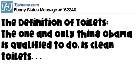 X says The Definition Of Toilets: The one and only thing Obama is qualified to do, is clean toilets. . .