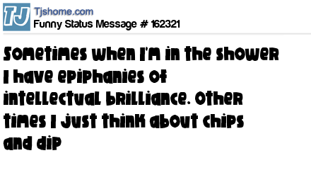 X says Sometimes when I'm in the shower I have epiphanies of intellectual brilliance. Other times I just think about chips and dip