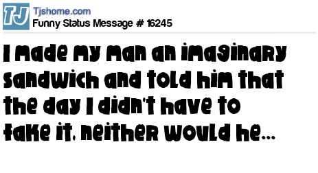 X  I made my man an imaginary sandwich and told him that the day I didn't have to fake it, neither would he...
