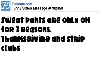 X says Sweat pants are only ok for 2 reasons. Thanksgiving and strip clubs