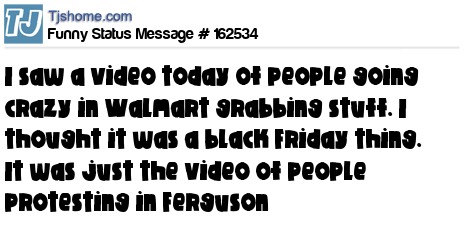 X says I saw a video today of people going crazy in Walmart grabbing stuff. I thought it was a black Friday thing. It was just the video of people protesting in Ferguson