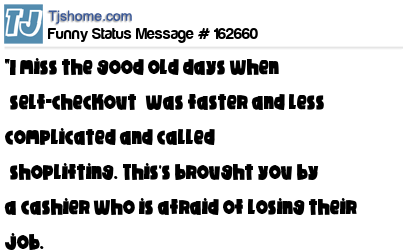 - # 162637 I miss the good old days when “self-checkout” was faster and less complicated and called “shoplifting.”