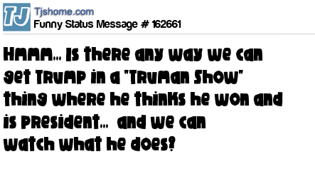 X says Hmmm,,, Is there any way we can get Trump in a "Truman Show" thing where he thinks he won and is president,,, and we can watch what he does?
