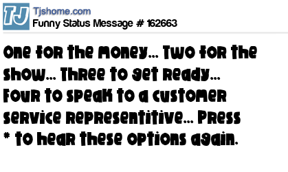 X says One for the money... Two for the show... Three to get ready... Four to speak to a customer service representitive... Press * to hear these options again.