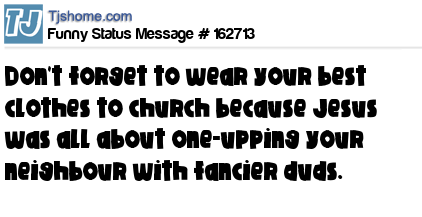 X says Don't forget to wear your best clothes to church because Jesus was all about one-upping your neighbour with fancier duds.