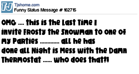 X says OMG .... this is the Last Time I invite Frosty the Snowman to one of my Parties ............. all he has done all Night is Mess with the Damn Thermostat ...... who does that?!