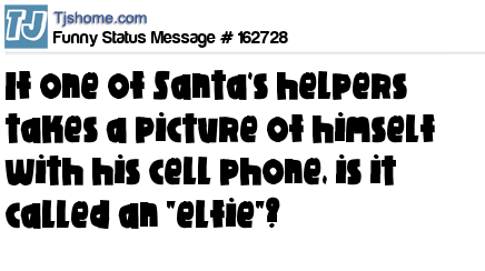 - # 155030 If one of Santa's helpers takes a picture of himself with his smartphone, is that an "elfie"?