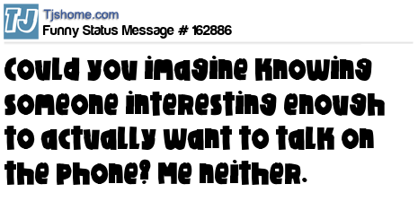 X says Could you imagine knowing someone interesting enough to actually want to talk on the phone? Me neither.