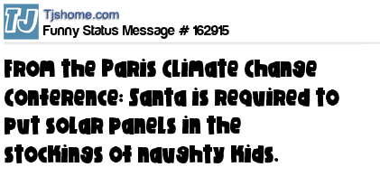 X From the Paris Climate Change Conference: Santa is required to put solar panels in the stockings of naughty kids.