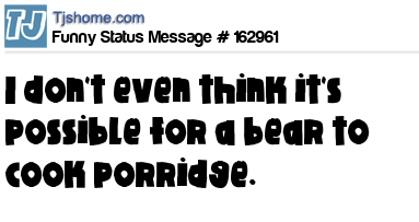 - # 48953 "Someone's been eating my porridge!", said Father bear. Mother bear sighed and poured him another bowl. Life was tough and draining for her, now that her husband was suffering from Alzheimer's.