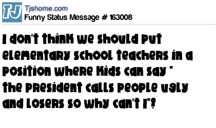 X says I don't think we should put elementary school teachers in a position where kids can say " the president calls people ugly and losers so why can't I"?