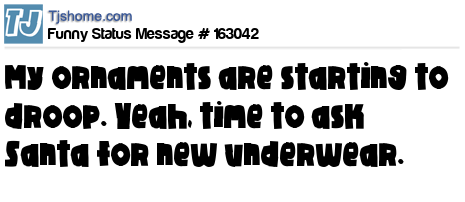 X My ornaments are starting to droop. Yeah, time to ask Santa for new underwear.