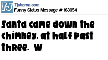 - # 84455 As a kid, did you ever see Santa claw himself down the chimney and make fun of your pyjamas? My shrink claims it never happened!
