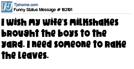 X says I wish my wife's milkshakes brought the boys to the yard. I need someone to rake the leaves.