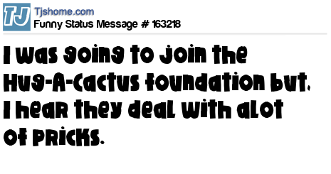 X I was going to join the Hug-A-Cactus foundation but, I hear they deal with alot of pricks.