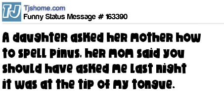 X A daughter asked her mother how to spell pinus, her mom said you should have asked me last night it was at the tip of my tongue.