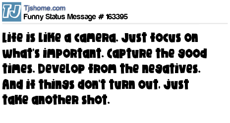 X says Life is like a camera. Just focus on what's important. Capture the good times. Develop from the negatives. And if things don't turn out, just take another shot.