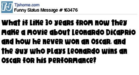 X says What if like 30 years from now they make a movie about Leonardo DiCaprio and how he never won an Oscar, and the guy who plays Leonardo wins an Oscar for his performance?