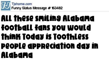 X says All these smiling Alabama football fans you would think Today is Toothless people appreciation day in Alabama