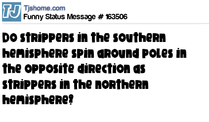 - # 12019 wonders if one took up dancing in the southern hemisphere, if it would be considered "pole" dancing